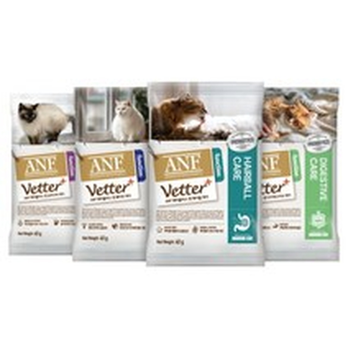 ANF 베터플러스 캣 사료 샘플 4종 x 40g 세트는 고양이들의 다양한 입맛에 맞춘 제품입니다.