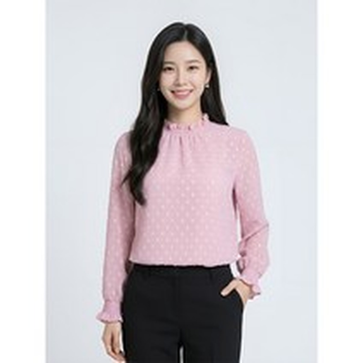 블라우스의 핏이 조금 넉넉하게 나와서 체형에 맞지 않는다면 다소 헐렁해 보일 수 있어요.