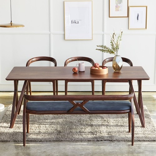 스코나 레이든 호두나무 월넛 원목 2000 6인 다이닝 식탁세트는 벤치 1개와 의자 3개로 구성된 멋진 제품입니다. 이 세트는 고급스러운 디자인과 내구성을 자랑하여, 가족과의 소중한 시간을 더욱 특별하게 만들어줄 것입니다.