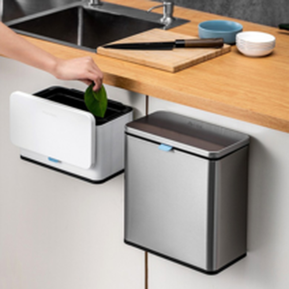 루비바 냄새차단 스테인리스 걸이형 쓰레기통으로 공기 청정하게