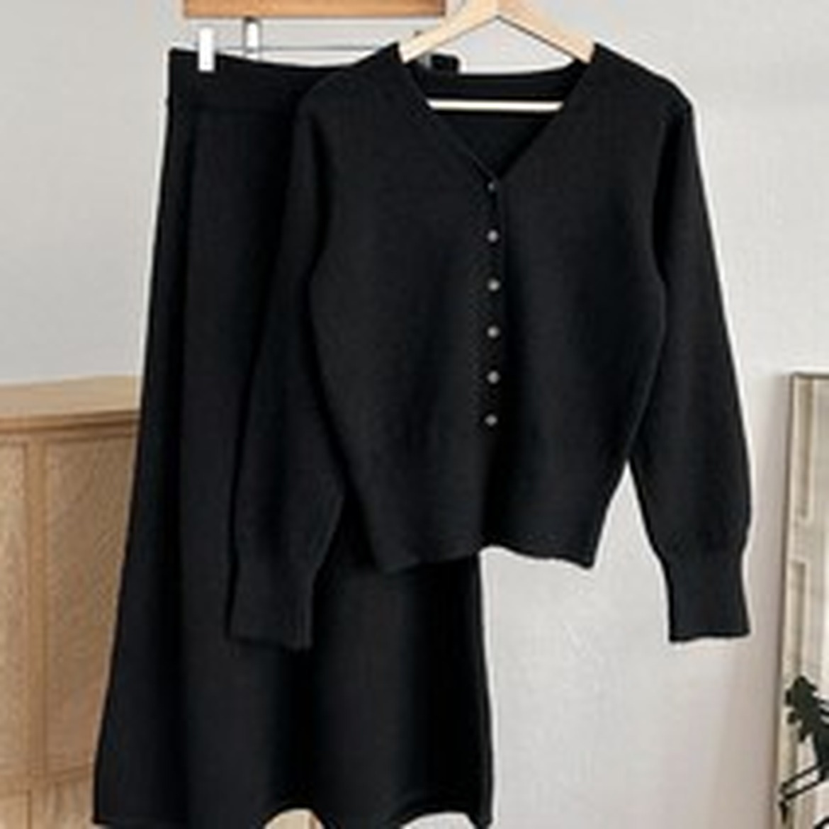 블랙 헤이즈 브이넥 니트 셋업, 편안하면서도 세련된 느낌