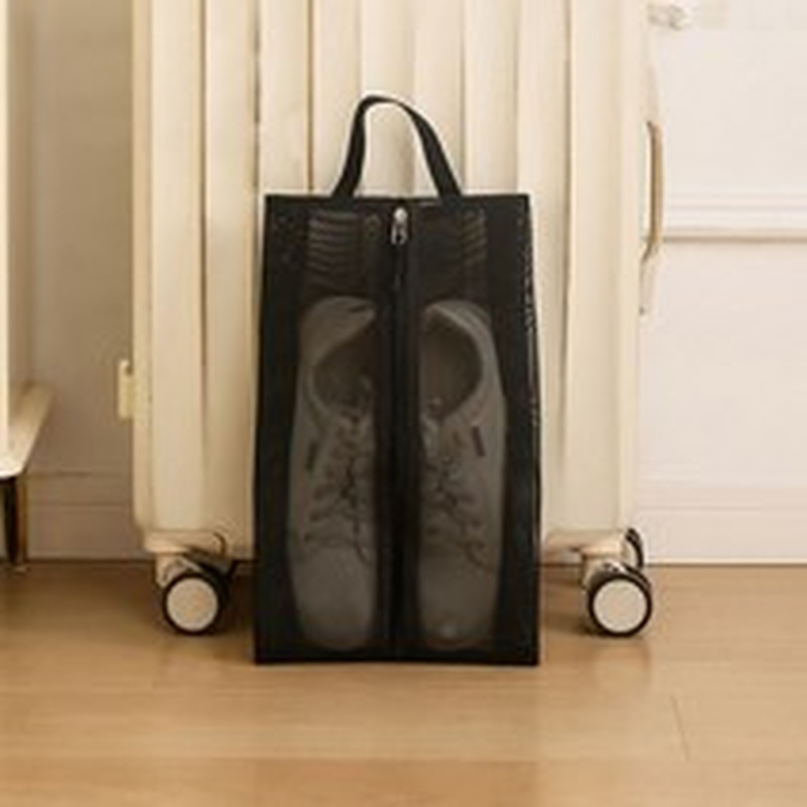 이 신발 가방은 경량 소재로 제작되어, 이동할 때 부담을 최소화합니다.