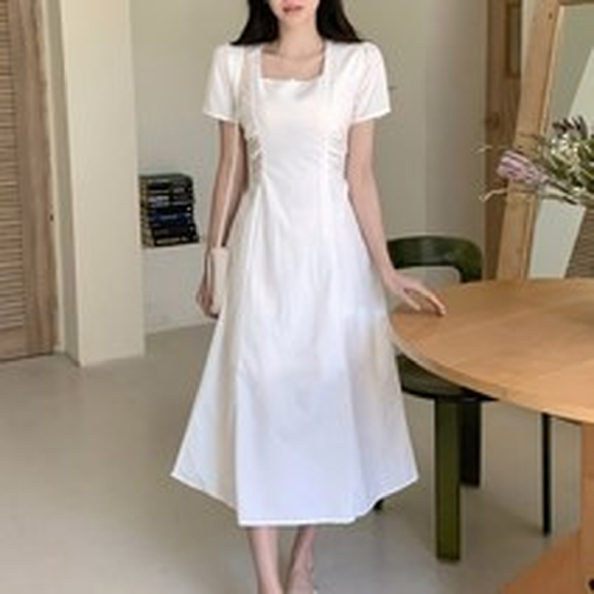 스퀘어넥 디자인 덕분에 어깨가 넓어