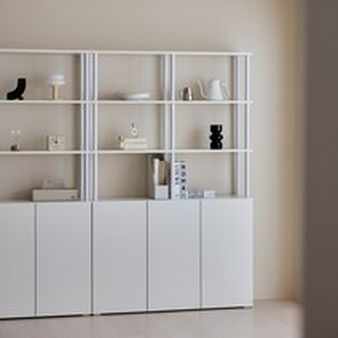 이 수납장 시스템은 유연한 구성으로, 일반 수납장과는 다른 시스템 선반으로 이루어져 있습니다.