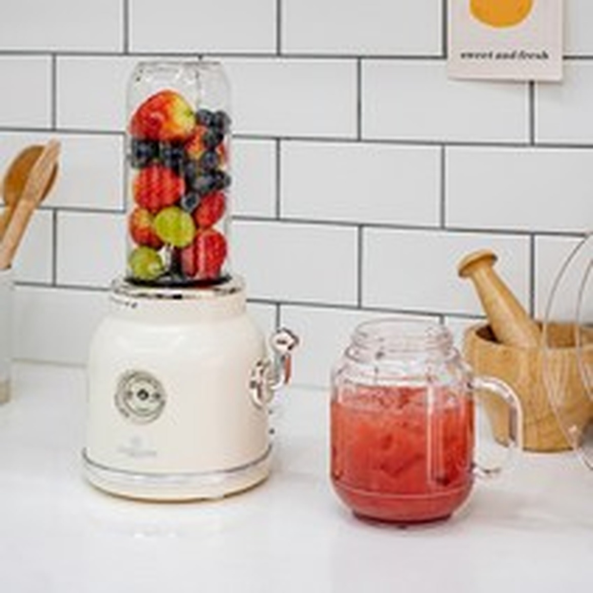 레트로 디자인으로 운동 후 즉시 활용 가능한 블렌더 믹서기