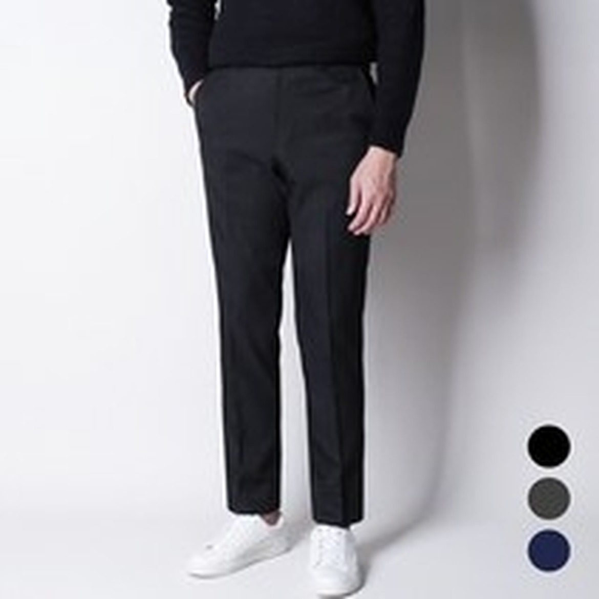 이 슬랙스는 기본 핏으로 디자인되어, 다양한 체형의 남성들이 편하게 입을 수 있도록 되어 있죠.